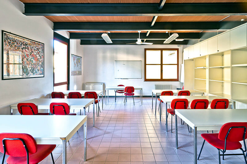 Spazi per lezioni frontali, lavori di gruppo e attività laboratoriali.Laboratori informatici