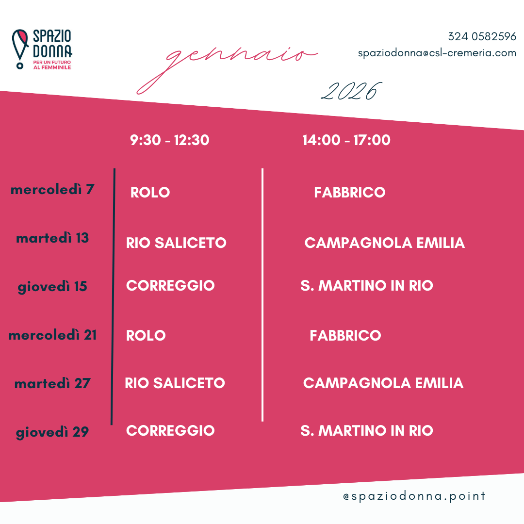 E’ un progetto, promosso dall’Unione Comuni Pianura Reggiana e che vede il sostegno della Regione Emilia-Romagna nell’ambito delle iniziative a sostegno della presenza paritaria delle donne nella vita economica del territorio, che consiste nell’apertura di un servizio gratuito, itinerante in tutti i 6 comuni dell’Unione, di orientamento, formazione e attivazione delle donne nel mondo del lavoro e che consolida le politiche sul tema della parità messe in campo dagli enti locali coinvolti (dopo quello di Correggio, infatti, lo stesso servizio, gestito dal personale del CSL La Cremeria, aprirà anche nei Comune di Campagnola Emilia, Comune di Fabbrico, Comune di Rio Saliceto, Comune di Rolo e Comune Di San Martino in Rio, con giornate e orari differenziati). Si vedano singole locandine delle varie inaugurazioni.